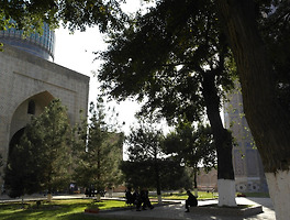 숙소와 가까워서 늘 지나다니면서 보게되는 구르 아미르. 가까운데도 얼른 가보지 못하고 여행 막바지에서야 가게 되었다.